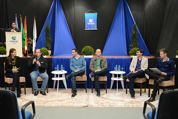 Ela explica que durante o encontro, realizado no auditório do campus, os participantes interagiram com Cícero Zardo, gerente de Pessoas da BRF, Neri José Fin, gerente de Processos Industrializados, Rodrigo Antonio Michelotto, coordenador Administrativo, e Vitório Almeida Filho, gerente de Processo de Aves. Na noite de ensaio para o evento, os acadêmicos receberam ainda o gerente da unidade de Videira, Giovanni Lazzarin Mendonça, e Nelci Zanchin, coordenadora de Qualidade, todos da BRF.