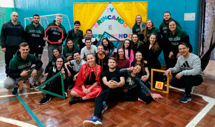 Durante as atividades da disciplina de Tópicos Avançados em Eventos Esportivos, os acadêmicos da 6ª fase dos cursos de Licenciatura e Bacharelado de Educação Física, da Unoesc São Miguel do Oeste, promoveram no sábado (24), a quarta edição do Brincando e Aprendendo. O evento reuniu grande público, com média de 200 participantes, no Centro Esportivo da Universidade, que pode interagir com os acadêmicos em modalidades esportivas, diversas brincadeiras lúdico-recreativas e apresentações culturais. Os pais e responsáveis que acompanharam as crianças puderam realizar avaliação física, no Laboratório de Fisiologia do Exercício, atividades de jump e circuito funcional na sala de ginástica.