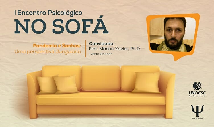 O curso de Psicologia da Unoesc Videira realizou, no dia 14 de maio, o I Encontro Psicológico “No Sofá”, contando com a participação de acadêmicos de todas as fases do curso. “Pandemia e Sonhos: Uma Perspectiva Junguiana”, foi o tema do encontro realizado de forma on-line. A fala foi ministrada pelo prof. Dr. Marlon Xavier, psicólogo pesquisador da Univesitat Oberta de Catalunya – Espanha.