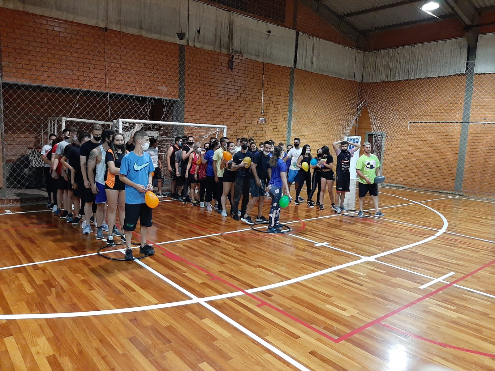 Atividades recreativas marcaram o retorno dos acadêmicos do curso de Educação Física para a Unoesc Videira. Realizadas no dia 16 de fevereiro, no ginásio de esportes do campus, além de celebrar o retorno às aulas 100% presenciais, o encontro serviu também para professores e veteranos darem as boas-vindas aos calouros, finalizando com jogos de voleibol envolvendo diversas equipes mistas nas duas quadras do ginásio.