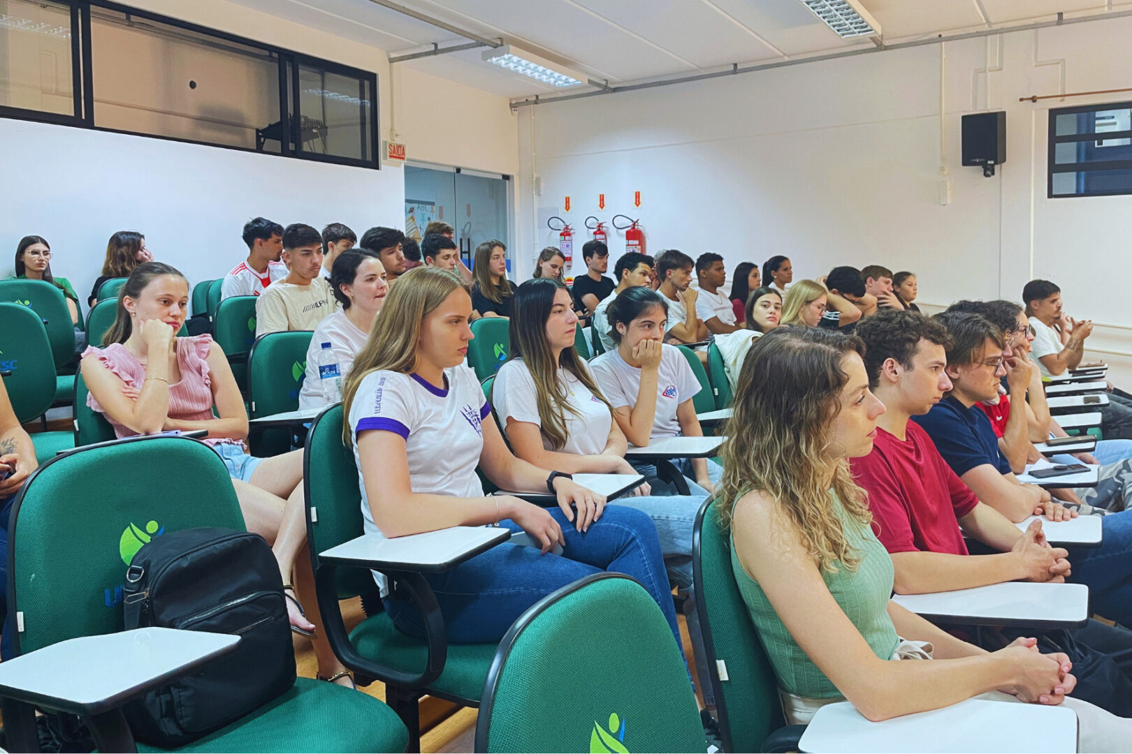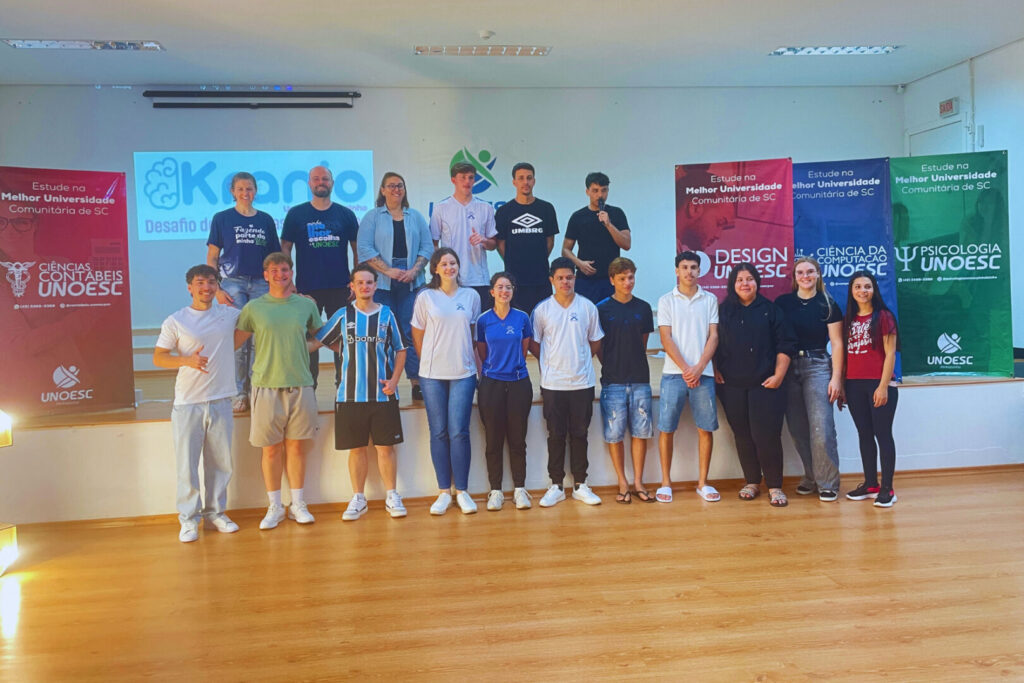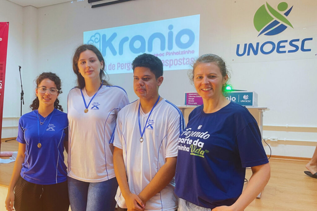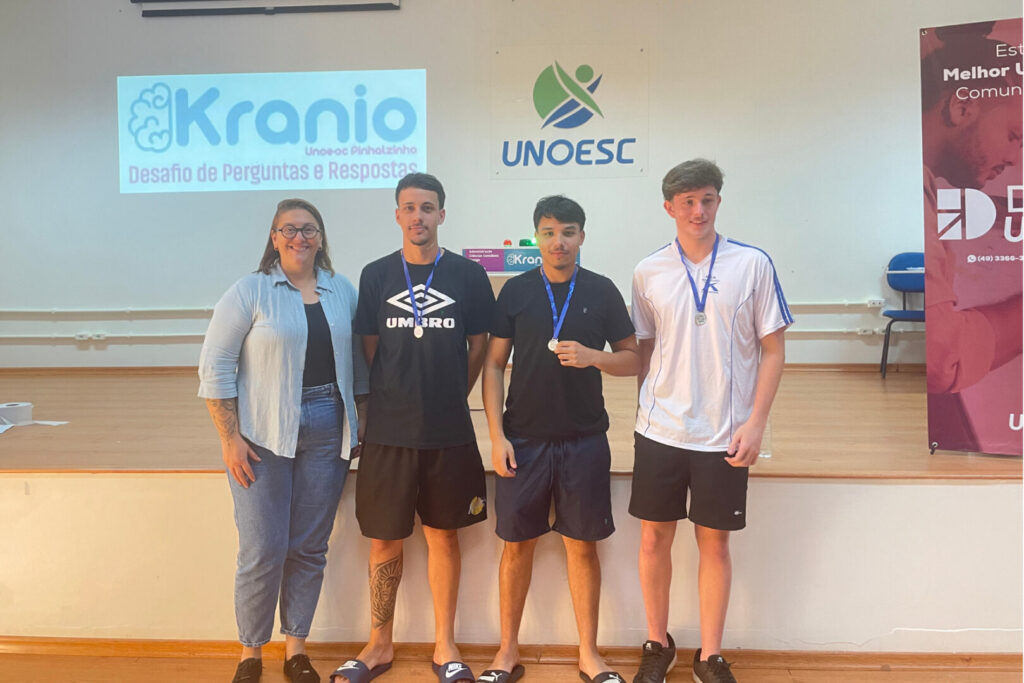 A Unoesc Pinhalzinho realizou o encerramento do projeto Kranio, iniciativa extensionista voltada aos estudantes da terceira série do Ensino Médio das escolas da região. A atividade, que utiliza uma dinâmica lúdica de perguntas e respostas, promove a aprendizagem de forma descontraída e incentiva a busca pelo conhecimento.