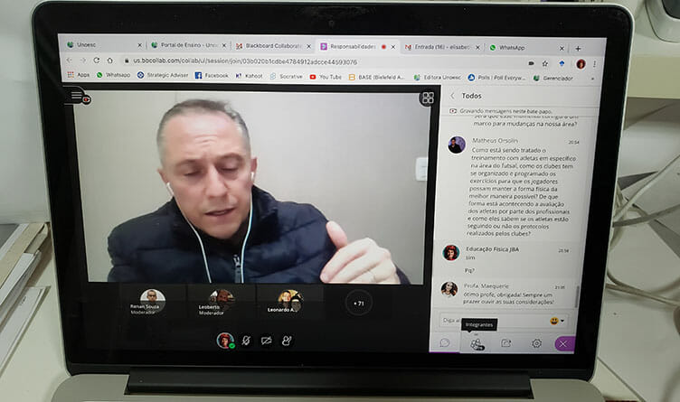 O Curso de Educação Física da Unoesc Joaçaba realizou entre os dias 12 e 20 de maio o Seminário On-line, Educação Física em tempo de Covid-19. A atividade teve como objetivo discutir a forma que os profissionais da área tem atuado frente a pandemia instalada no mundo Ao todo, participaram 234 pessoas, de Santa Catarina, Rio Grande do Sul e São Paulo, sendo acadêmicos professores e profissionais do segmento.