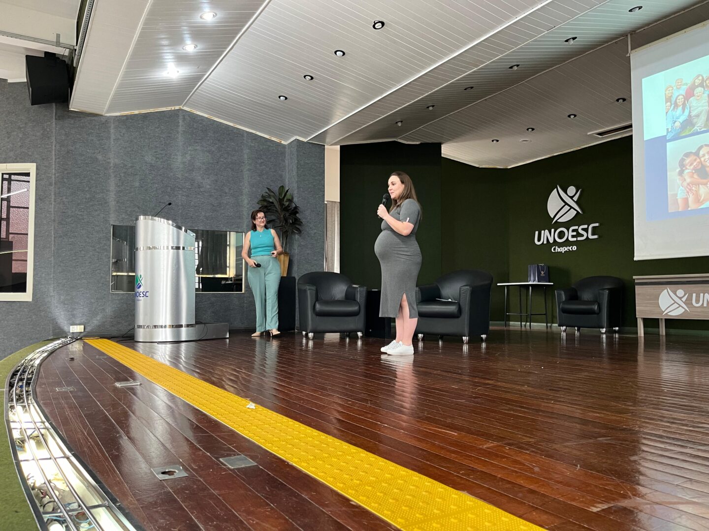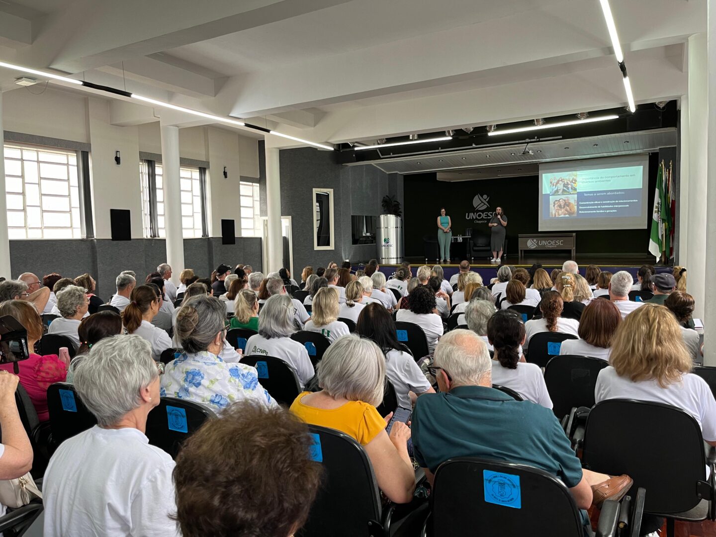 Na tarde da segunda-feira (21), o auditório do bloco S, da Unoesc Chapecó, recebeu debates importantes sobre como a terceira idade se comunica em meio a tanta tecnologia e quais atitudes podem prolongar, com qualidade, as suas vidas. As palestras realizadas pela Universidade da Melhor Idade (Umic/Univida) foram acompanhadas com atenção por mais de 130 estudantes presentes.