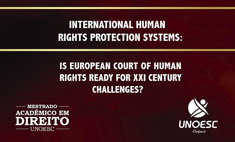 Nos dias 7 e 8 de junho, acontecerá no auditório A, na Unoesc Chapecó, o “International Human Rights Protection Systems: is European Court of Human Rights Ready for XXI Century Challenges?” (Sistemas Internacionais de Proteção dos Direitos Humanos: o Tribunal Europeu dos Direitos Humanos está preparado para os desafios do século XXI?, em tradução livre) promovido pelo Programa de Mestrado em Direito da Unoesc Chapecó, em cooperação com as respectivas coordenações de Direito de cada campus. O evento contará com a participação dos professores Katarzyna Galka, Jakub Czepek vindos da Polônia e Martin Faix e Pavel Bures, da República Techa.