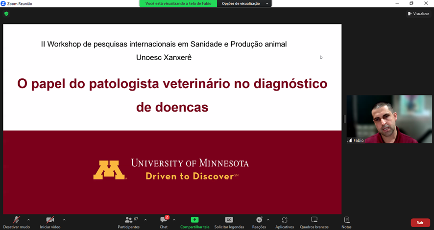Assim, o “2º Workshop de Pesquisas Internacionais em Sanidade e Produção Animal”, promovido no dia 17 de novembro, pelo PPGSPA da Unoesc, reuniu discentes do Mestrado e dos cursos de Graduação em Medicina Veterinária e Zootecnia, além de profissionais da área, e contou com palestrantes que atualmente estão em universidades do Uruguai e dos Estados Unidos e que realizam pesquisas nas áreas citadas.