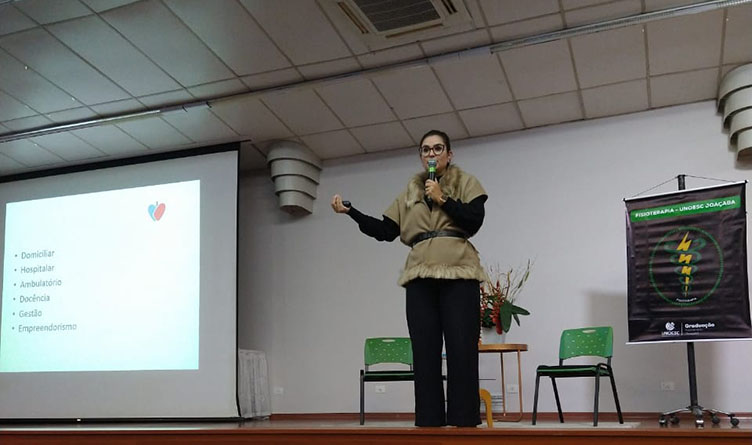 Tanto o minicurso quanto a palestra foram apresentados pela fisioterapeuta Flávia R. Rocha de Oliveira, Mestra em Fisioterapia, Pós-graduada em Fisioterapia Cardiorrespiratória, em Terapia Intensiva e em Oncologia e sócia-proprietária da clínica PulseCOR, localizada em Itajaí. Durante o minicurso, a profissional apresentou recursos modernos utilizados na fisioterapia respiratória, e na palestra abordou a importância dessa área em diversos contextos de atendimento ao paciente.