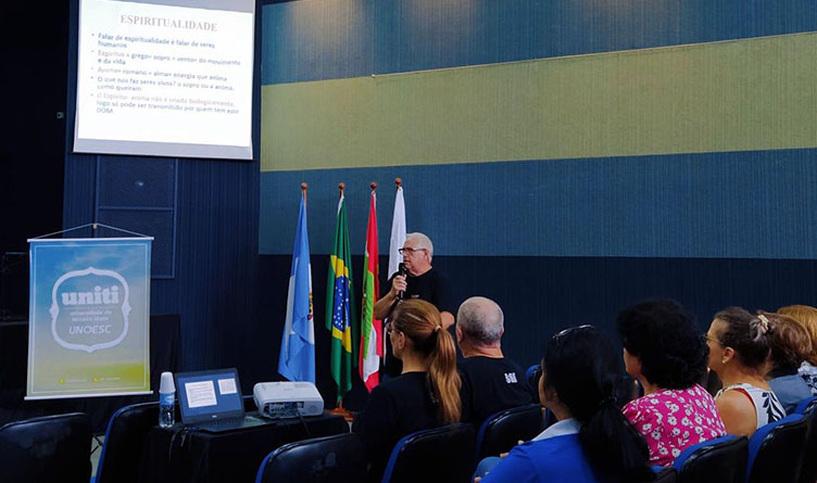 Na Unoesc Joaçaba, as atividades de 2023 iniciaram neste mês de março. A aula inaugural, que reuniu ingressantes e alunos que já estavam cursando a Uniti, foi ministrada pelos professores Ana Paula Pereira e Luiz Fernando Spessato, que abordaram os temas “Mulheres maravilhosas” e “Quem canta seus males espanta”, respectivamente. Durante os três semestres de duração da nova turma, os conteúdos serão abordados por meio de palestras, com professores capacitados e metodologia adaptada ao público da terceira idade. As aulas acontecem no campus 1.