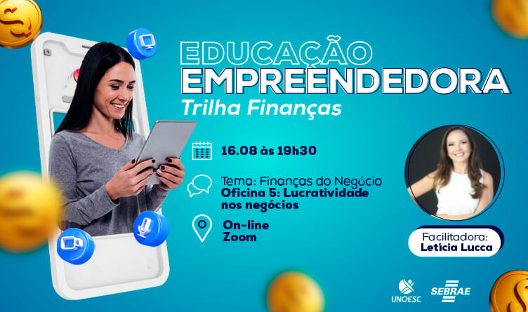 Quando se tem um negócio, obter lucro é um dos principais objetivos. Mas como garantir que o negócio de fato prospere? Essa será uma das questões abordadas na oficina do mês de agosto do projeto “Educação Empreendedora” desenvolvido pela Unoesc e pelo Sebrae. O evento acontecerá no dia 16 de agosto, de forma on-line, das 19h30 às 21h. As inscrições são gratuitas e podem ser realizadas no site da Universidade.