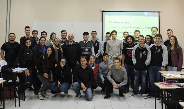 O professor Acilão Gonçalves Antunes, proporcionou para a turma da 3ª fase, durante o componente curricular de Microeconomia, uma palestra com o diretor executivo da Coopercampos, Clebi Renato Dias. Ele tem quase 40 anos de Coopercampos, conheceu e vivenciou a história dessa grande organização que atua em nossa região. Em sua fala, ressaltou o case “Coopercampos e seu trabalho no mercado de commodities”. Comentou também de economia, da atual situação do Brasil, bem como de sua vasta experiência internacional, pois já visitou 34 países e esteve 22 vezes nos EUA.