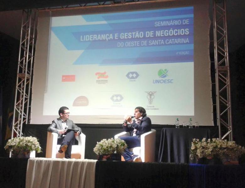 Com o tema “Gestão de Negócios”, o empresário e investidor do ramo de entretenimento Álvaro Garnero, encerrou na quarta-feira (28), à noite, o 4º Seminário de Liderança e Gestão de Negócios do Oeste de Santa Catarina, promovido pelos cursos de Administração e Ciências Contábeis da Unoesc Videira, que teve ainda o renomado jornalista Caco Barcellos durante a abertura na terça-feira (27).