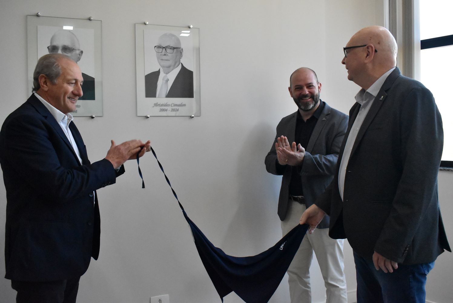 Na manhã de quarta-feira (24), dirigentes da Unoesc, coordenadores de setor e a diretora geral do Hospital Universitário Santa Terezinha (HUST) prestigiaram o descerramento da placa com a imagem do professor Aristides Cimadon, fixada na galeria de reitores da Unoesc. A homenagem aconteceu na Reitoria como forma de reconhecimento a toda a dedicação do professor durante as gestões entre 2004 e 2024.
