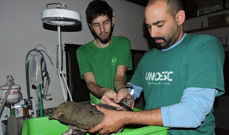 O professor Guilherme Augusto Marietto Gonçalves, do curso de Medicina Veterinária da Unoesc Xanxerê, participou de um plano de manejo de macuco, realizado no Centro Güira Oga, em Puerto Iguazu, na Argentina.