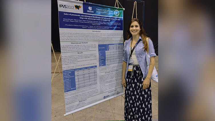 Na ocasião, a professora apresentou, na forma de pôster, um trabalho científico desenvolvido pelo grupo de pesquisa em sanidade animal do Programa de Pós-graduação em Sanidade e Produção Animal e do curso de Medicina Veterinária da Unoesc Xanxerê.
