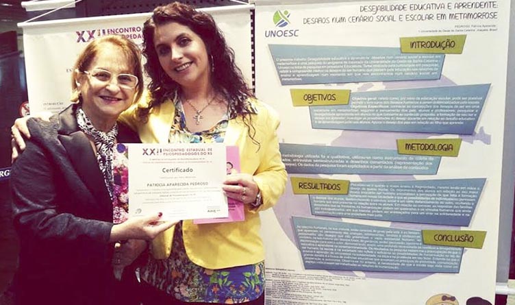 A coordenadora pedagógica da Unoesc Virtual e coordenadora de gestão do Programa Institucional de Bolsa de Iniciação à Docência (Pibid) na Unoesc, professora Patrícia Pedroso, participou, recentemente, do 22º Encontro Estadual de Psicopedagogia, em Gramado no Rio Grande do Sul. A 4ª Mostra Estadual de Estudantes de Psicopedagogia e 1º Fórum de Coordenadores de cursos de Psicopedagogia ocorreu de forma paralela ao evento.
