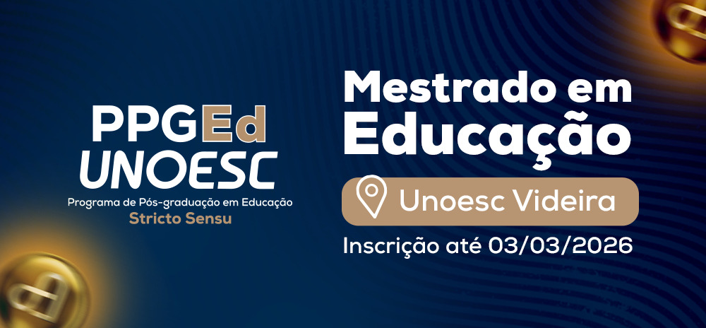 O Programa de Pós-graduação em Educação (PPGEd) da Unoesc está com inscrições abertas para uma turma do Mestrado em Educação na Unoesc Videira. A turma ingressará no primeiro semestre de 2026.