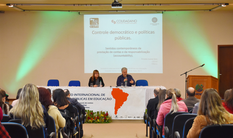 O Programa de Pós-graduação em Educação (PPGEd) da Unoesc realizou, nos dias 23 e 24 de maio, o Seminário Internacional de Políticas Públicas em Educação. O tema do evento foi “Avaliação educacional, prestação de contas e responsabilização (accountability) em contextos ibero e latino-americanos”. Durante o evento foram realizadas palestras, painel com estudantes, oficina e lançamento de livros, além de comunicações orais. O seminário contou com a presença de pesquisadores, profissionais da educação básica e superior, estudantes de instituições nacionais e estrangeiras.