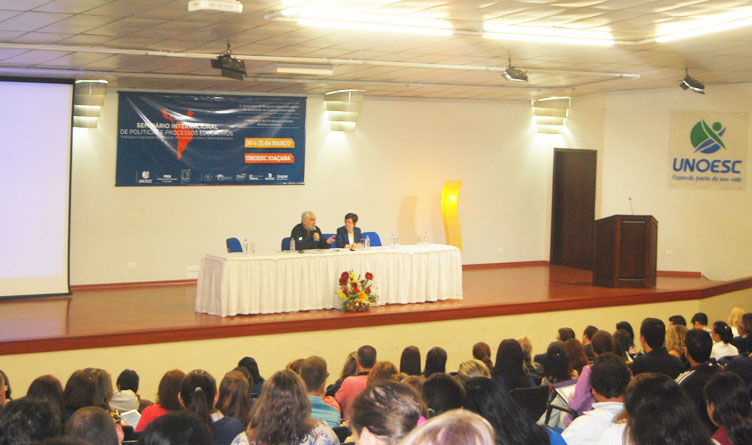 Entre os dias 30 e 31 de março ocorreu, na Unoesc de Joaçaba, o Seminário Internacional de Políticas e Processos Educativos, além do 4º Seminário de Pesquisa sobre Indicadores de Qualidade do Ensino Fundamental e 2º Seminário de Estratégias e Ações Multidisciplinares. O evento foi organizado pelo Programa de Pós-graduação em Educação (PPGed – Mestrado) e teve por objetivo analisar questões relacionadas à avaliação e regulação da educação nos contextos ibero e latino-americanos, assim como promover a constituição de frentes de pesquisa, especialmente por meio de cooperação para o desenvolvimento de projetos em rede.