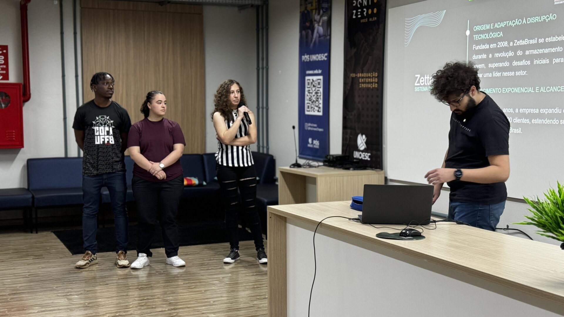 Viver e desenvolver no presente as tecnologias do futuro. A Unoesc sediou, na noite de quinta-feira (22), no Ponto.Zero, a apresentação dos projetos desenvolvidos pelos participantes do Programa em Residência em Tecnologia da Informação e Comunicação (TIC). A iniciativa, conduzida pela BRISA, empresa especialista em soluções de software, e realizada pela Unoesc, formou 39 estudantes.