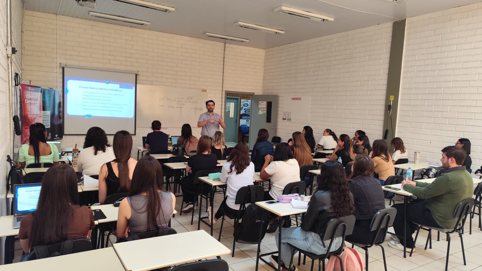 No dia 21 de fevereiro, o curso de Ciências Contábeis da Unoesc Videira promoveu o curso “Reforma Tributária: o que preciso saber ainda para 2026!”, reunindo 27 participantes entre estudantes, egressos, profissionais da Contabilidade e membros da comunidade, além do instrutor convidado, egresso do curso. Com carga horária de quatro horas, a atividade teve como focos a compreensão técnica das principais mudanças do sistema tributário brasileiro e seus impactos práticos no cenário de transição.
