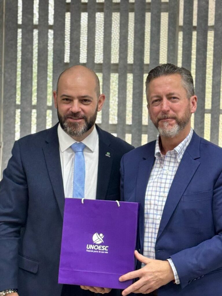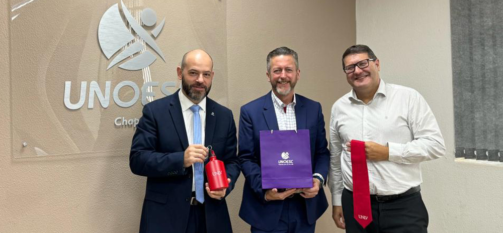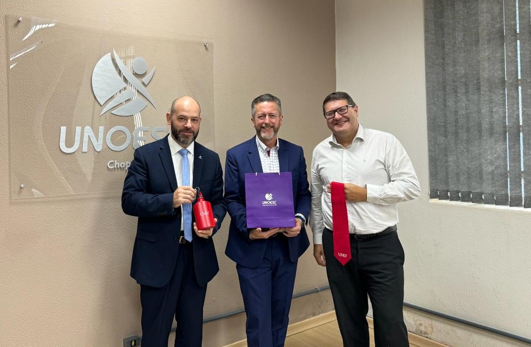 Na segunda-feira (8), na Unoesc Chapecó, o reitor Ricardo Antonio De Marco, o vice-reitor da Unoesc Chapecó, Carlos Eduardo Carvalho, a diretora de Relações Internacionais da Unoesc, Nicole Stivaletta Contini, e pesquisadores recepcionaram o diretor de Relações Internacionais e Parcerias da University of Nevada at Las Vegas (UNLV) (Universidade de Nevada, Las Vegas, em tradução literal), Marty A. Bennett. O objetivo do encontro foi estreitar o relacionamento entre as instituições, visando parcerias.
