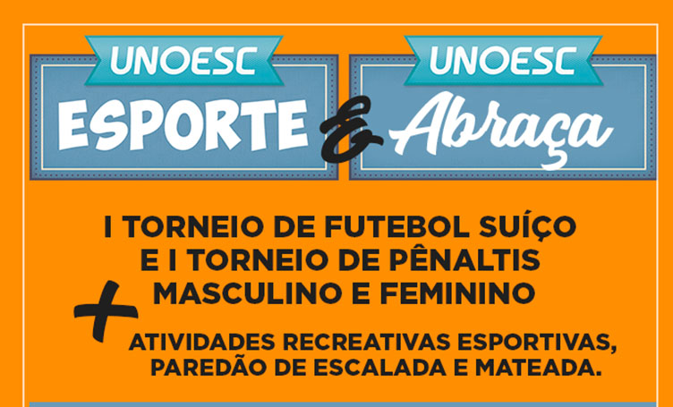 Neste mesmo dia, ocorrerá também o Unoesc Esporte com Torneio de Futebol Suíço e de pênaltis masculino e feminino, voltado para acadêmicos, professores e funcionários da Unoesc. As inscrições podem ser feitas no local do evento e são gratuitas.