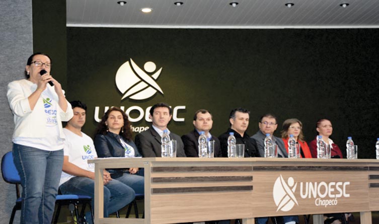 A coordenadora institucional do Pibid, professora Regina Oneda Mello, falou sobre o “jeito Unoesc de fazer Pibid”, aliando teoria à prática e estabelecendo parcerias importantes em cada área de formação. Atualmente, a instituição conta com cerca de 280 pessoas envolvidas com o programa. A professora também citou as publicações científicas que são resultado das pesquisas realizadas a partir das experiências pibidianas.