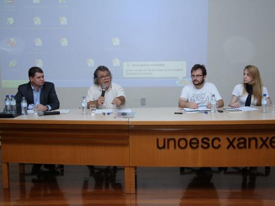 Ao final, instigou os acadêmicos e a juventude a pesquisar de forma crítica e a aceitar a ideia de que um outro mundo é perfeitamente possível.