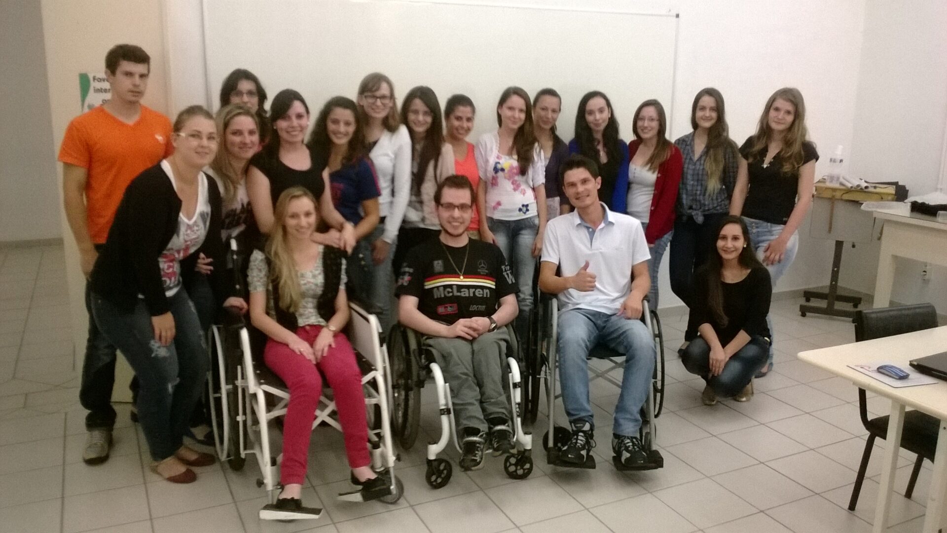 Durante a aula, Franchin fez uma exposição de como é o cotidiano para um cadeirante, relatou as principais dificuldades, ao mesmo tempo em que discutiu com o grupo de estudantes a legislação que regulamenta a acessibilidade.