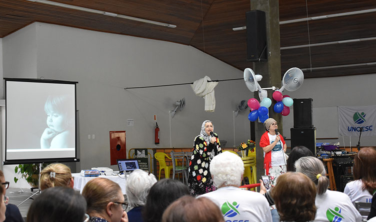 A confraternização foi pensada para que pudessem aproveitar seu dia de forma dinâmica e extrovertida e contou com o apoio da equipe do “Projeto Alegria no Ar”, animando o evento. Os participantes acompanharam uma palestra das professoras Marcia Terezinha da Rocha Restelatto e Kátia Bechers, que caracterizadas como Clara e Gema, duas alunas que vieram conhecer a Uniti, resgataram memórias de como era ser idoso no passado e como tem sido nos dias atuais. O objetivo foi comentar que muita coisa mudou na forma como os idosos encaram a vida, na forma como se relacionam na sociedade e diante do avanço da tecnologia. Os idosos também puderam jogar baralho, dominó e bocha. Ao final aproveitaram um lanche servido no local, cantaram e dançaram.