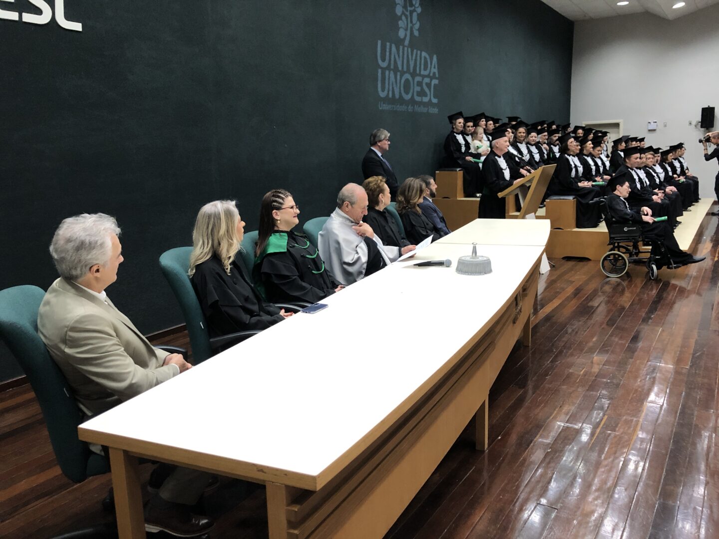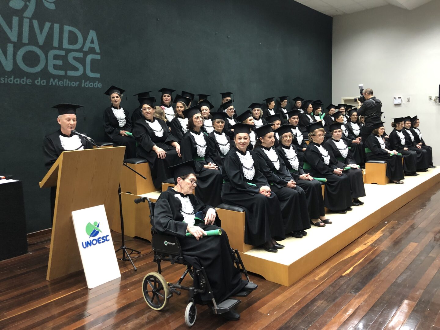 No sábado (17), o anfiteatro da Unoesc Xanxerê foi palco de uma emocionante cerimônia de certificação dos concluintes da quinta turma do curso de Extensão da Universidade da Melhor Idade (Univida). A solenidade reuniu autoridades, familiares, professores e os formandos que, após 18 meses de convivência, aprendizado e afeto, celebraram não apenas o fim de um curso, mas o recomeço de uma nova etapa da vida.