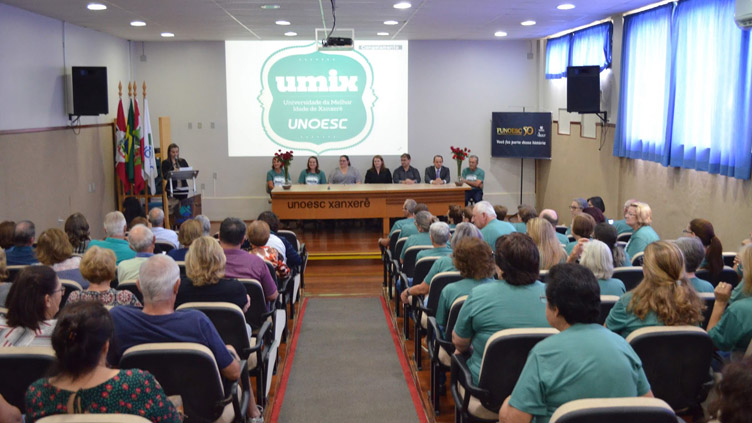 Em meio a depoimentos emocionantes dos alunos da primeira turma e de falas dos componentes da mesa enaltecendo o programa da Unoesc e da importância de se ter um espaço de valorização da vida nesta idade, a Unoesc Xanxerê recepcionou, no dia 27 de fevereiro, a 2ª turma da Universidade da Melhor Idade – Umix.