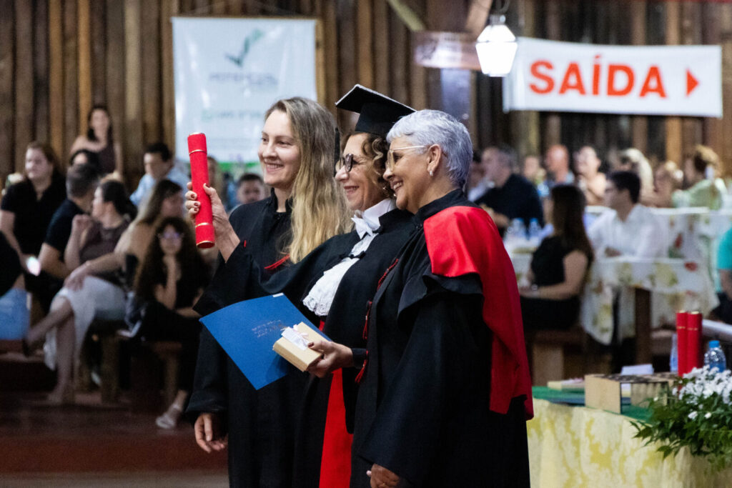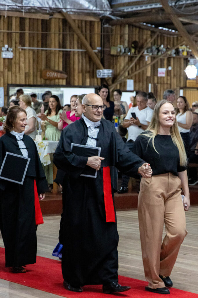 Os oradores Rosane Martins e Vilmar Vedana conduziram os discursos em nome das turmas A e B, em uma noite marcada por reconhecimento e homenagens aos professores, dirigentes, estudantes, colaboradores e técnicos administrativos que contribuíram para o fortalecimento do projeto que completou 14 anos de atuação desde sua criação, em 2011. Após a solenidade, os formandos participaram de um jantar de confraternização, seguido do brinde oficial e da apresentação de uma valsa coreografada pela professora Vanessa Pescador, simbolizando o encerramento das atividades em 2025.