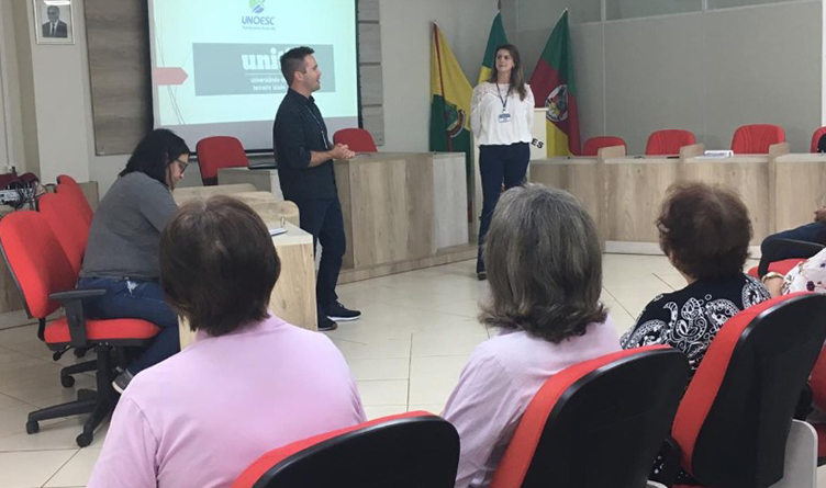 A Unoesc Campos Novos, por meio de seu diretor, professor Diego Glader, e da coordenadora da Universidade da Terceira Idade (UNITI), professora Juliane Brogliato Albuquerque, estiveram no dia 22 de abril, na Câmara de Vereadores de São José de Ouro, juntamente com os integrantes dos grupos Riquezas Interior e Laços da Amizade, para apresentar os cursos oferecidos pela universidade.