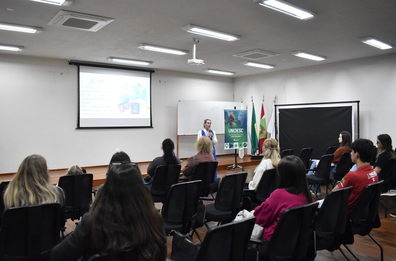 A Coordenadoria Geral de Relações Internacionais (CGRI) da Unoesc promoveu, na quinta-feira (28), no Auditório D do campus 1, um evento voltado aos estudantes de graduação interessados em participar do Programa de Mobilidade Acadêmica, nas modalidades presencial e virtual. Na próxima semana, a reunião também acontecerá nos campi de Xanxerê e Campos Novos.