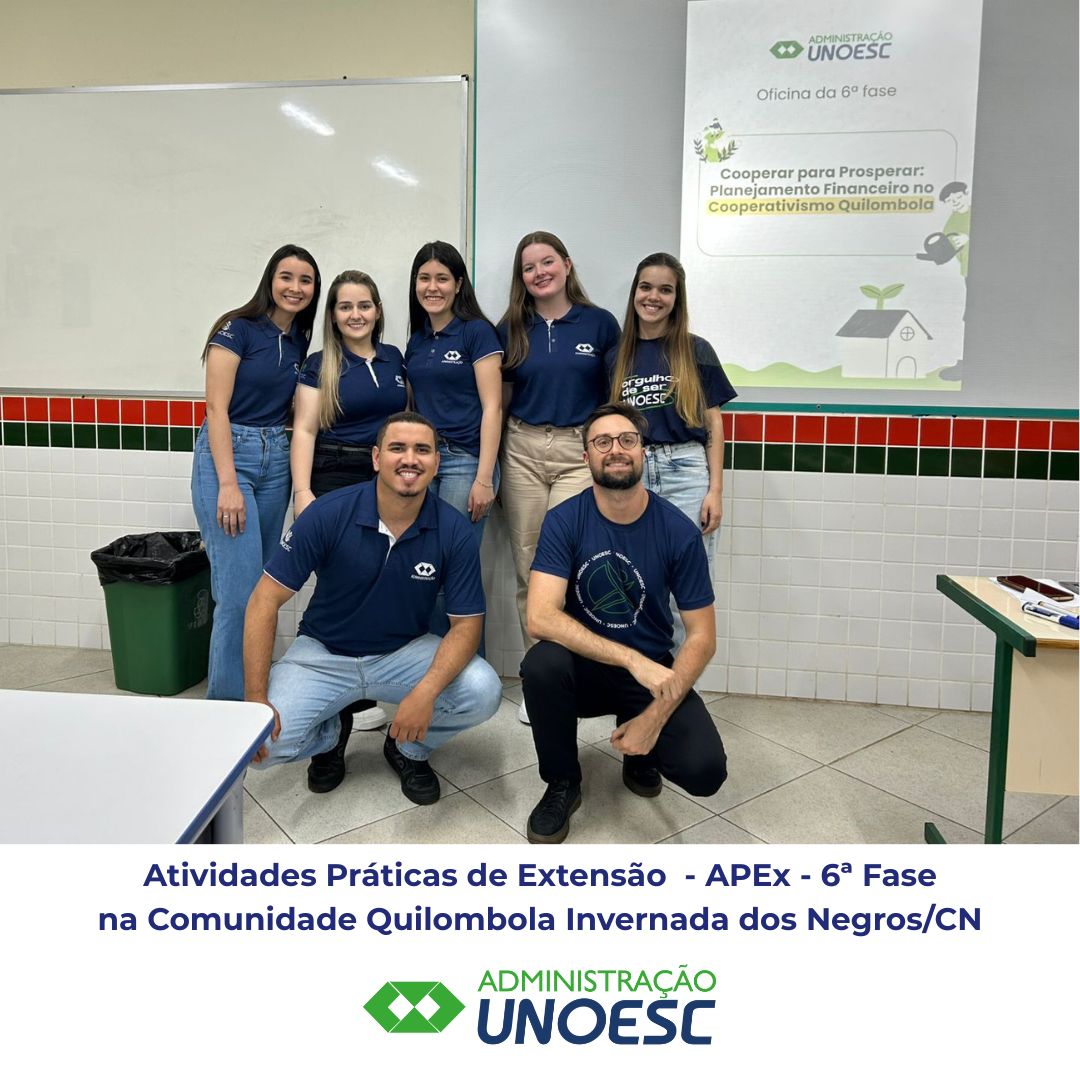 Estudantes da segunda fase dos cursos de Pedagogia e Administração e da sexta fase do curso de Administração da Unoesc Campos Novos, vinculados às Atividades Práticas de Extensão (APEX), desenvolveram, no dia 19 de novembro, diversas oficinas na Comunidade Quilombola Invernada dos Negros, em Campos Novos. A iniciativa integrou a Prática Profissional Comunitária, um momento formativo que aproxima Universidade e sociedade por meio de ações educativas, culturais e sociais.
