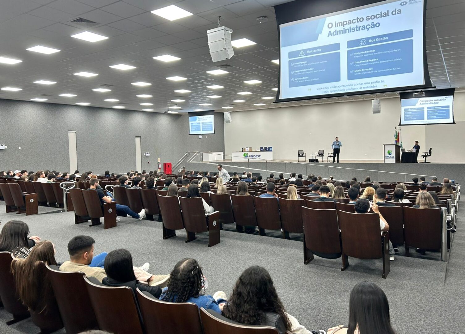 — Receber um evento dessa relevância reforça o papel da Unoesc como espaço de integração entre teoria e prática. É uma oportunidade para que os estudantes ampliem sua visão de mercado e fortaleçam sua trajetória profissional a partir do contato direto com lideranças da área — ressalta o coordenador do curso de Administração da Unoesc Campos Novos, professor Edson Douglas Casagrande.