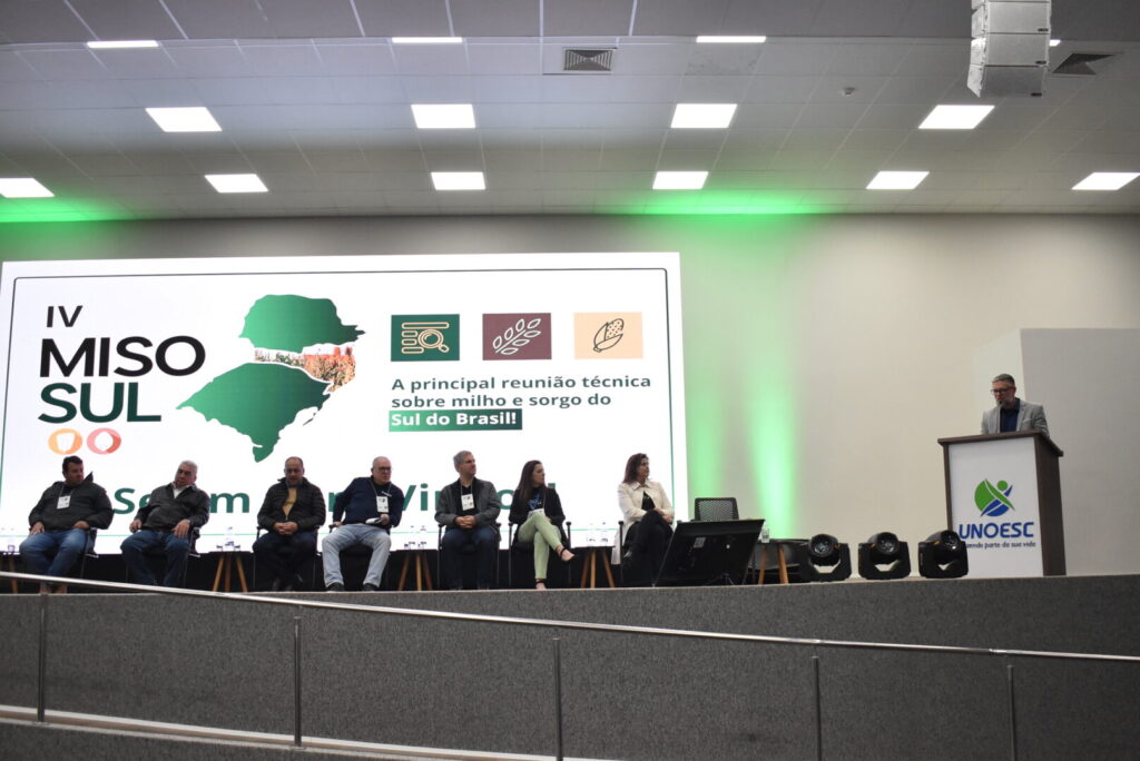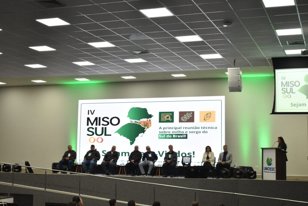 A Unoesc Campos Novos sediou, nos dias 26 e 27 de agosto, a 4ª Reunião Técnica Sul-Brasileira de Pesquisa de Milho e Sorgo (MISOSUL). O evento, realizado de forma itinerante a cada dois anos entre Paraná, Santa Catarina e Rio Grande do Sul, reuniu especialistas, pesquisadores, representantes de instituições de ensino, extensão e produtores rurais para debater os desafios e as perspectivas da cadeia produtiva do milho e do sorgo.