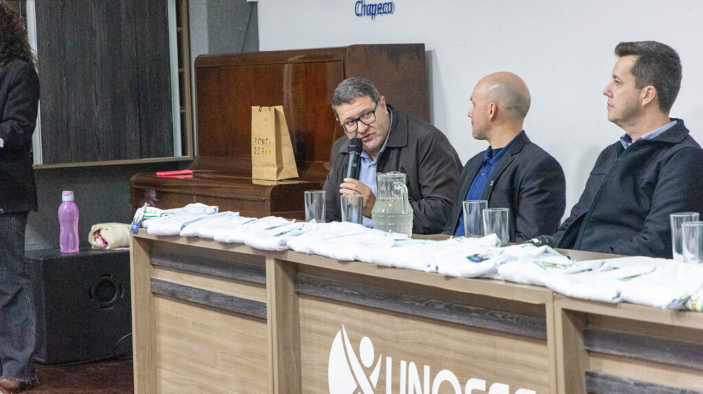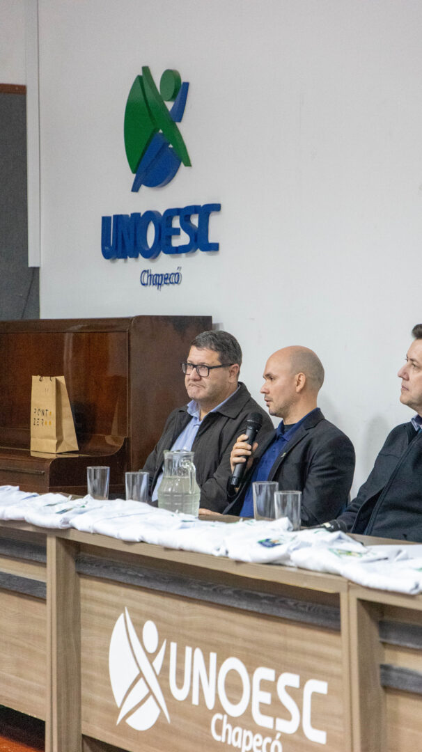 O evento contou com a participação do vice-reitor da Unoesc Chapecó, professor Carlos Eduardo Carvalho, do diretor de Ensino, professor Celso Paulo Costa, do diretor de Pesquisa, Pós-graduação, Extensão e Inovação, professor Diego Beal, e do coordenador do curso de Fisioterapia, professor Rafael Cunha Laux. Também esteve presente o professor do componente de estágio, Mark Andrey Mazaro, e a terapeuta ocupacional e conselheira efetiva do Conselho Regional de Fisioterapia e Terapia Ocupacional da 10ª Região (Crefito 10), Maristela Vieira, que representou o presidente André Cruz. Um vídeo do presidente do Crefito 10 também foi exibido.