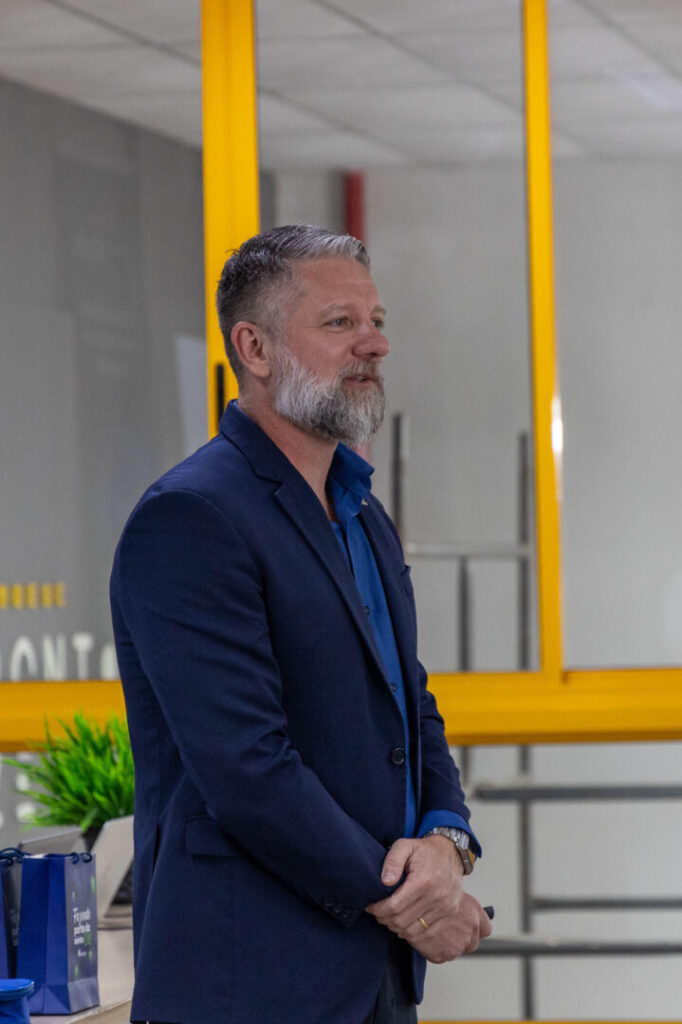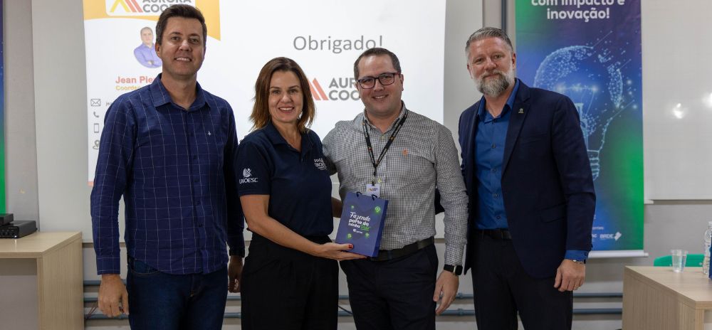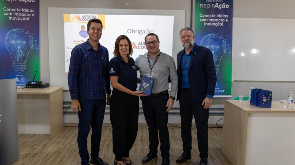 A programação da manhã também contou com a participação do gestor corporativo de inovação da Aurora Coop, Jean Pierre Kurtz. Na oportunidade, apresentou iniciativas da cooperativa voltadas à inovação aberta, transformação digital e integração com startups, além de destacar as expectativas das empresas em relação às universidades na geração de soluções tecnológicas.