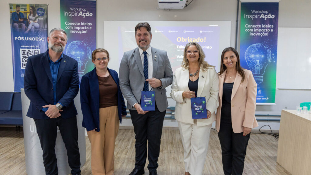 A Unoesc Chapecó sediou, na terça-feira (10), o “Workshop InspirAção”, um encontro voltado à conexão entre universidade, instituições de fomento e empresas da região Oeste. O evento reuniu professores, pesquisadores e gestores de vários campi da Unoesc, além de representantes de instituições do ecossistema de inovação.