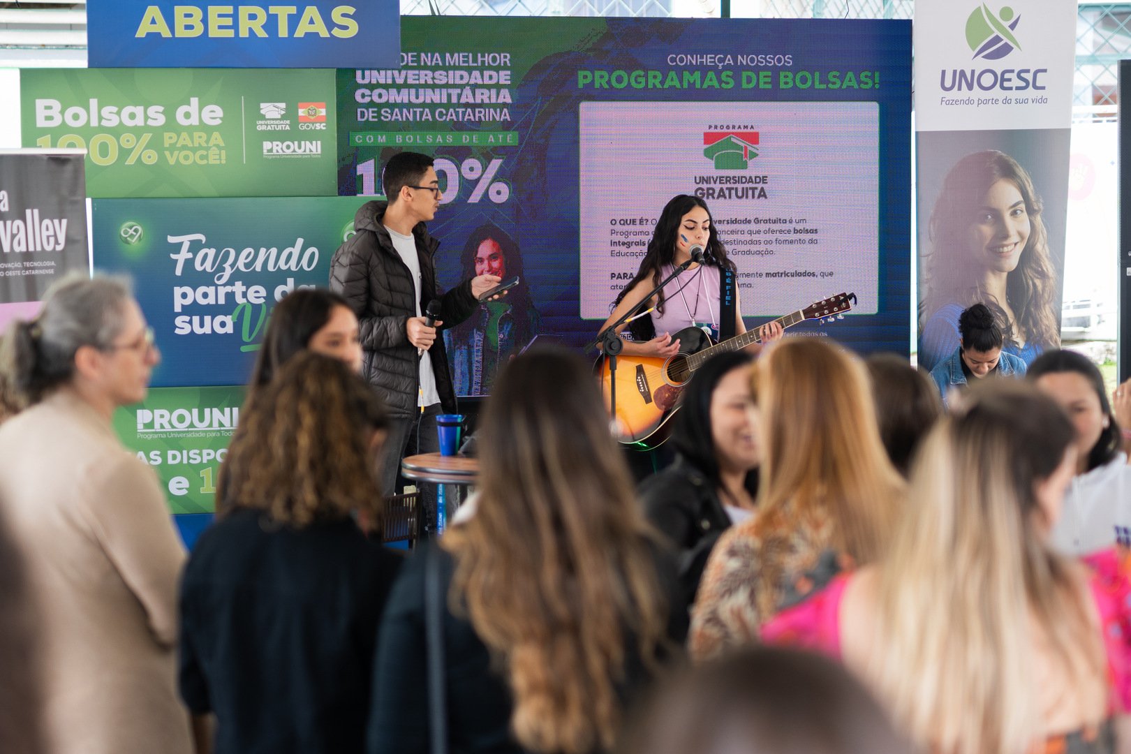 Em formato de festival, com seis palcos distribuídos pelo evento, o “Unoesc Day” mobilizou os visitantes em mais de 50 atividades que, de forma lúdica, possibilitaram o ponto de contato dos interessados às matrizes curriculares, possibilidades de carreira e ao mercado de trabalho. Além disso, ativações de marca e ações de lazer deixaram o dia muito mais divertido.