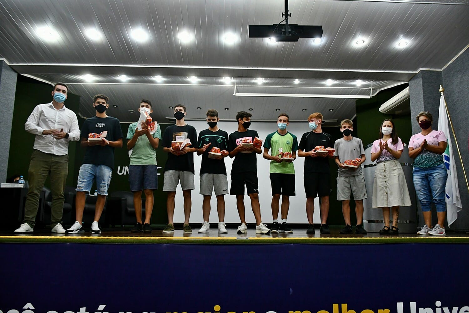 No último dia 7, foi realizado na Unoesc Chapecó o 1º encontro do projeto “A base da Chape lê” que foi desenvolvido por meio da parceria entre o curso de Pedagogia da Unoesc Chapecó e Associação Chapecoense de Futebol (ACF) com o objetivo de estimular a criatividade, melhorar a concentração e a memorização, ampliar o vocabulário e as habilidades de escrita.