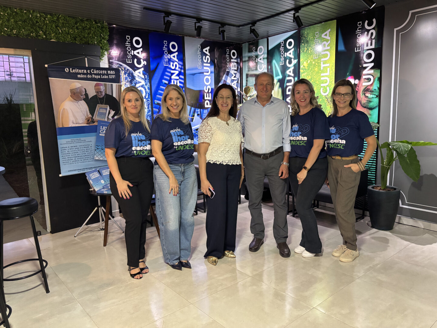 Além da divulgação institucional, o estande da Unoesc também se consolidou como ponto de encontro durante a feira. Ao longo da programação, a Universidade recebeu dirigentes institucionais, lideranças políticas e empresariais e representantes da comunidade regional, fortalecendo vínculos e dialogando sobre o desenvolvimento educacional e social do Oeste catarinense.