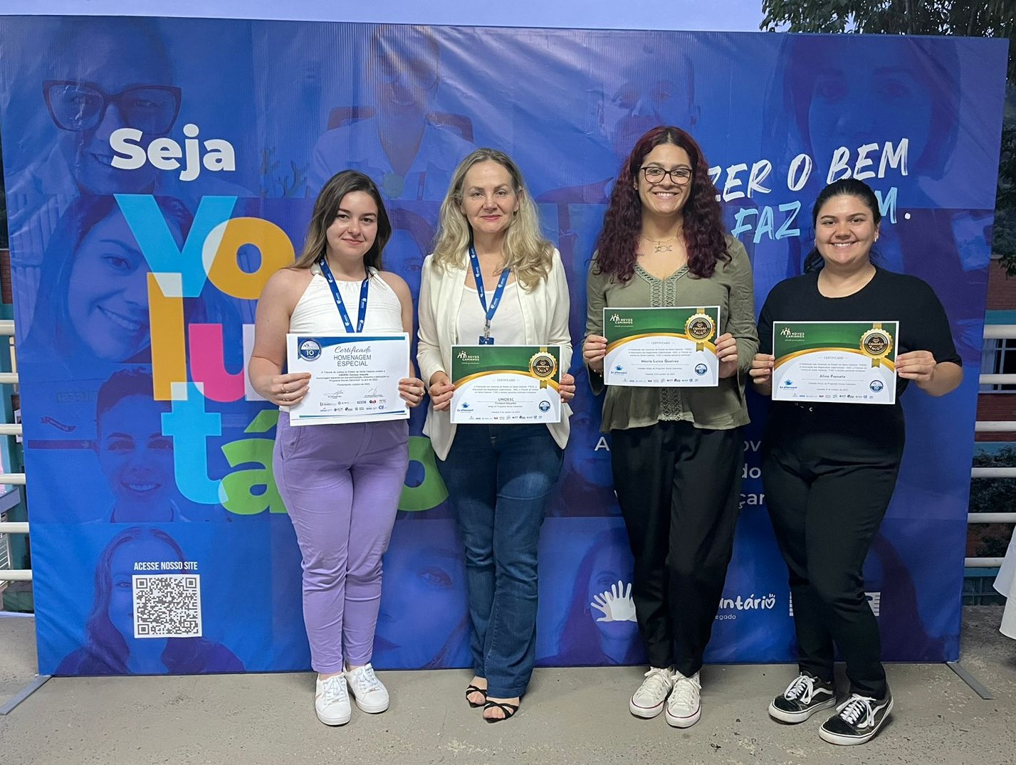 No evento, o Hospital Universitário Santa Terezinha (HUST) recebeu o certificado “Empresa Cidadã” por oportunizar a inserção de adolescentes no Programa Novos Caminhos no mercado de trabalho em 2023. Também foram homenageadas estudantes do curso de Psicologia da Unoesc Joaçaba pelo trabalho “Saúde mental para adolescentes acolhidos e cuidadores dos Abrigos/Casa Lar da região”.