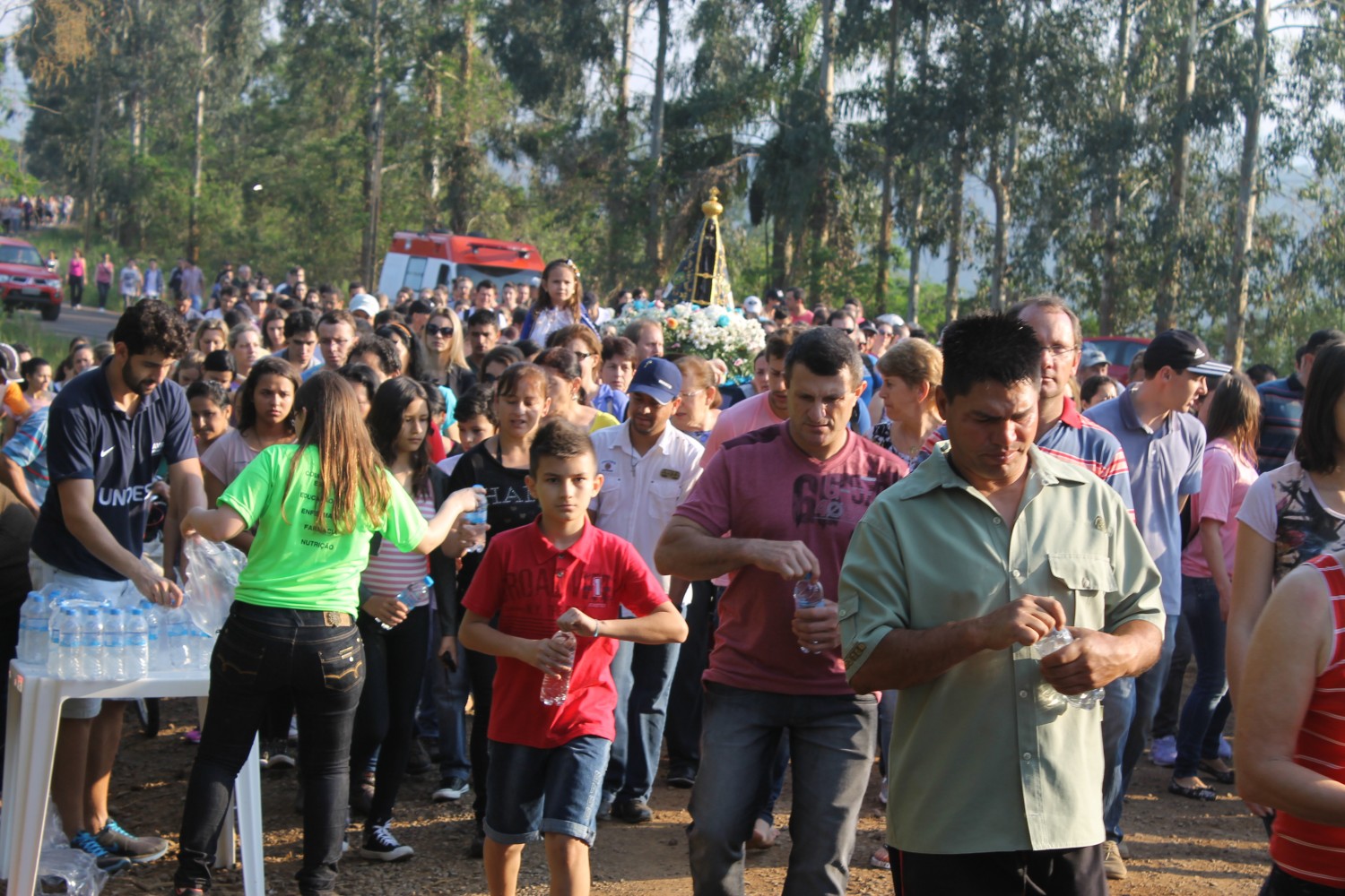 A participação da Unoesc na festa consistiu na distribuição de água e frutas para os romeiros, trabalho executado por acadêmicos dos cursos de Educação Física, Farmácia, Nutrição, Comestologia e Estética, acompanhados pelo professores Jaisson Bordignon e Mônica Frigheto.