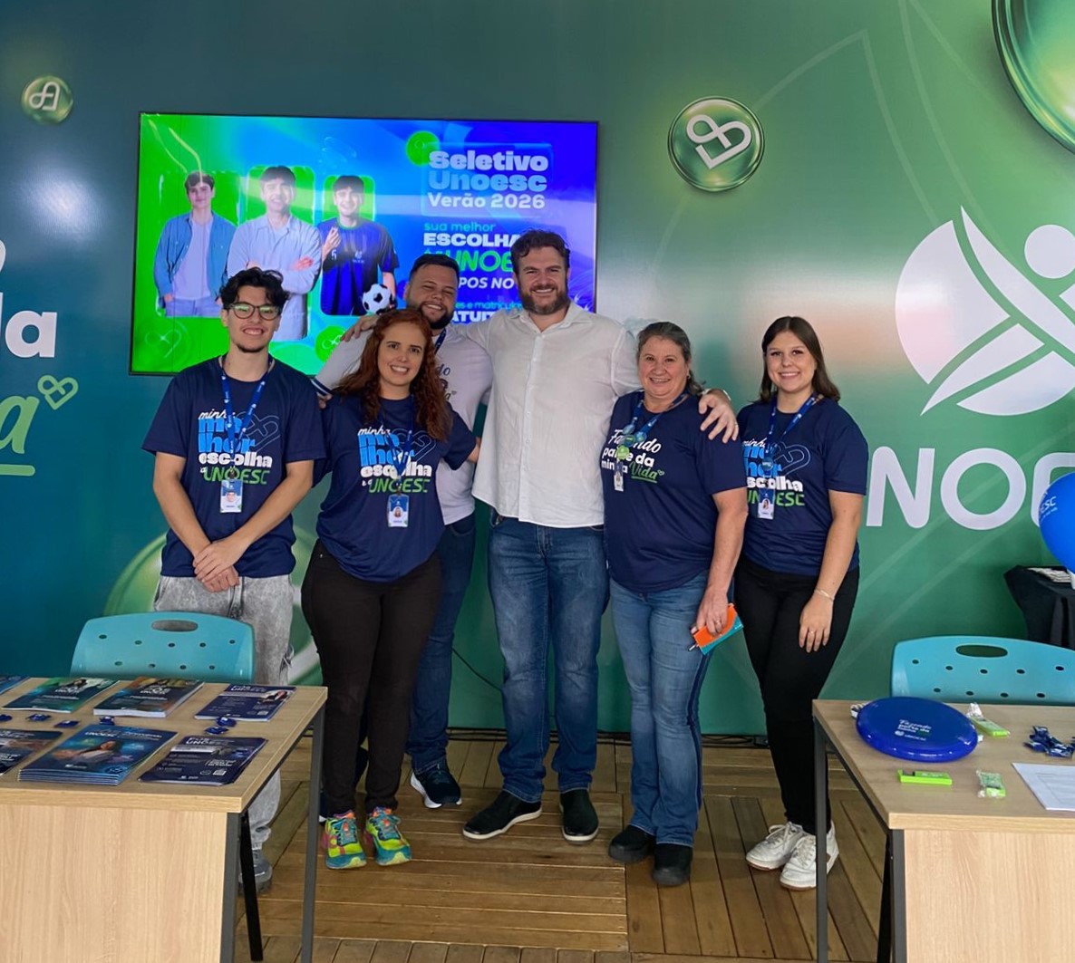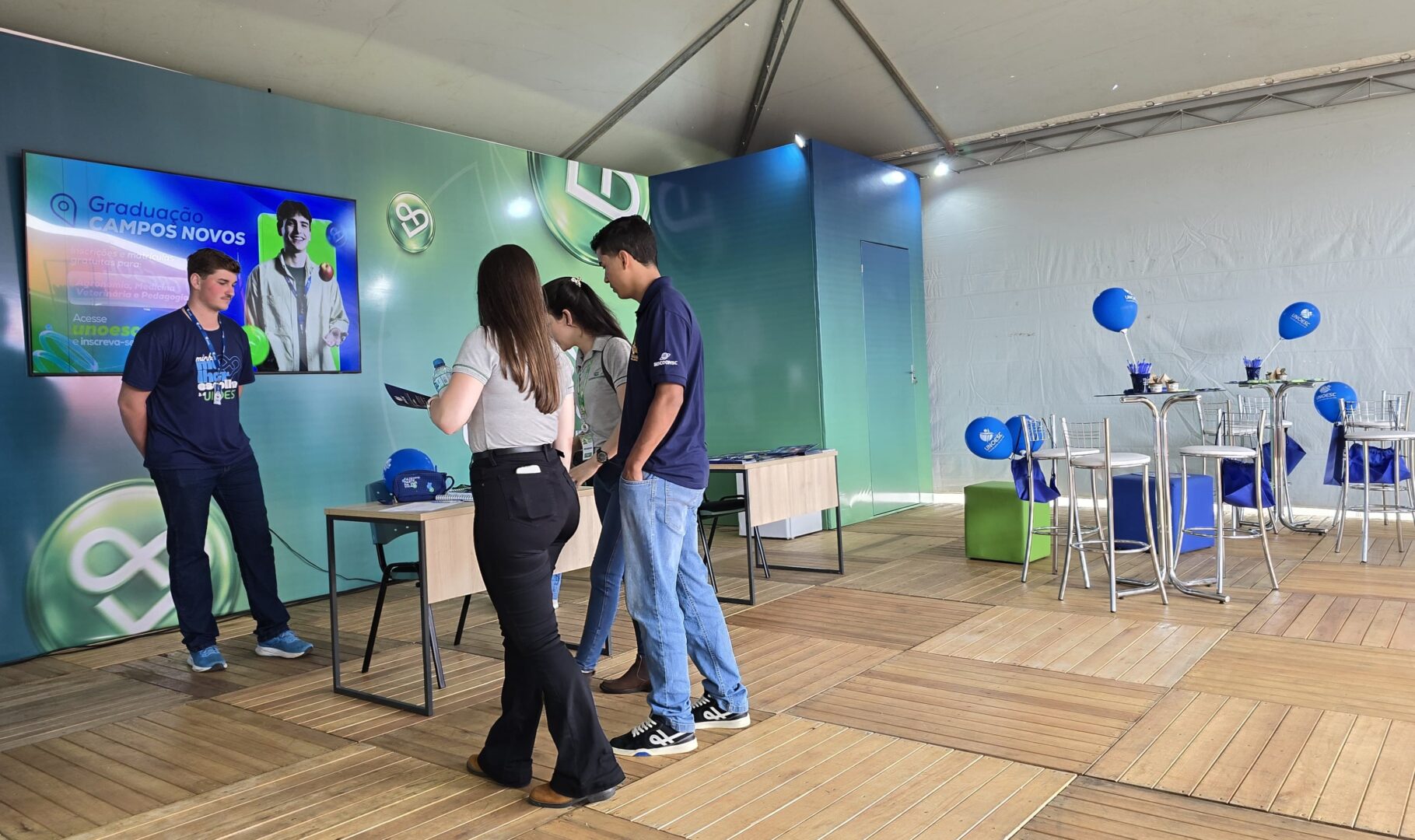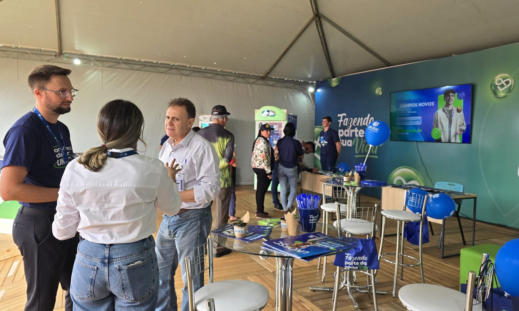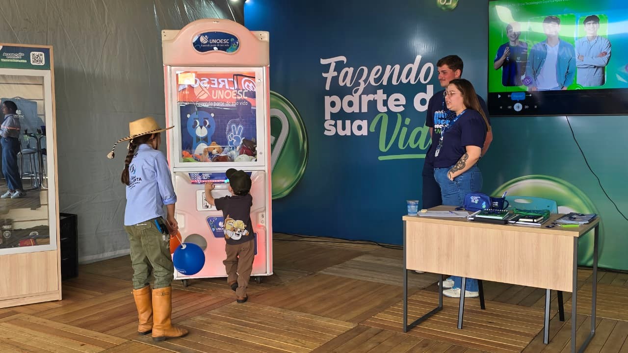 Durante a feira, a Unoesc conta com um estande próprio, onde divulga a atuação institucional e a excelência dos cursos ofertados, com destaque para as graduações e os projetos desenvolvidos no campus de Campos Novos. Além da distribuição de sementes e suculentas em vasos reciclados produzidos por estudantes de Agronomia, os visitantes encontram opções de interação, como a máquina de pelúcias, e participam de sorteios de brindes.