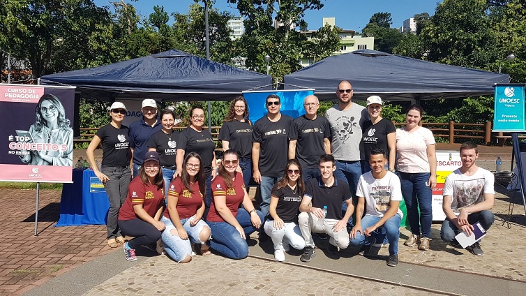 A Unoesc Videira participou do evento Hiperdia Solidário, na Praça do Largo da Estação, neste sábado, 30 de março. Por meio dos cursos de Educação Física, Farmácia, Nutrição e Pedagogia, desenvolveram-se diversas atividades de promoção à saúde, inserção social e ambiental. O evento, direcionado à comunidade videirense, envolveu atividades de atendimento com ênfase na saúde, bem-estar, nutrição, atividades física, sustentabilidade e solidariedade.
