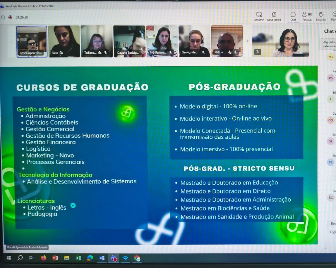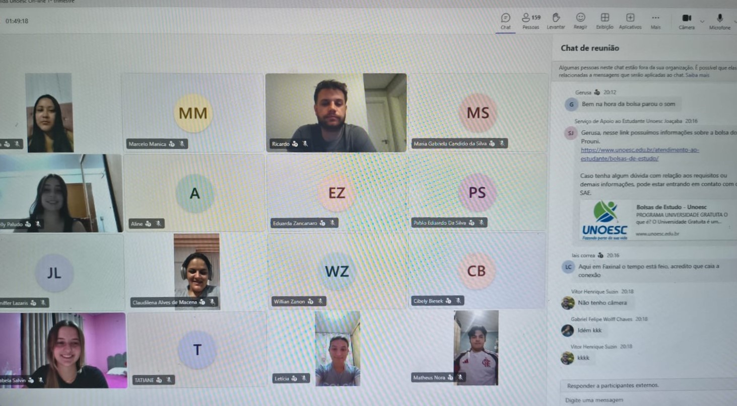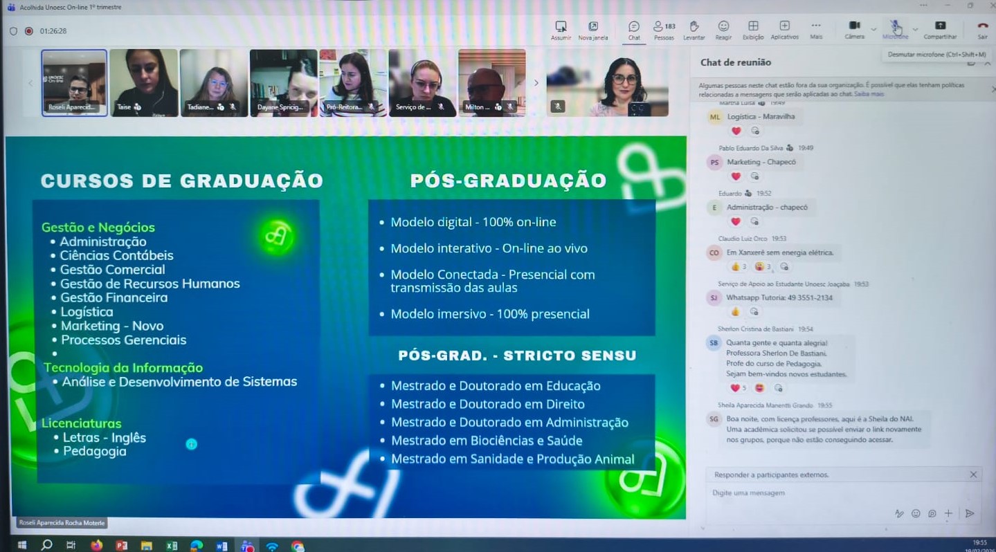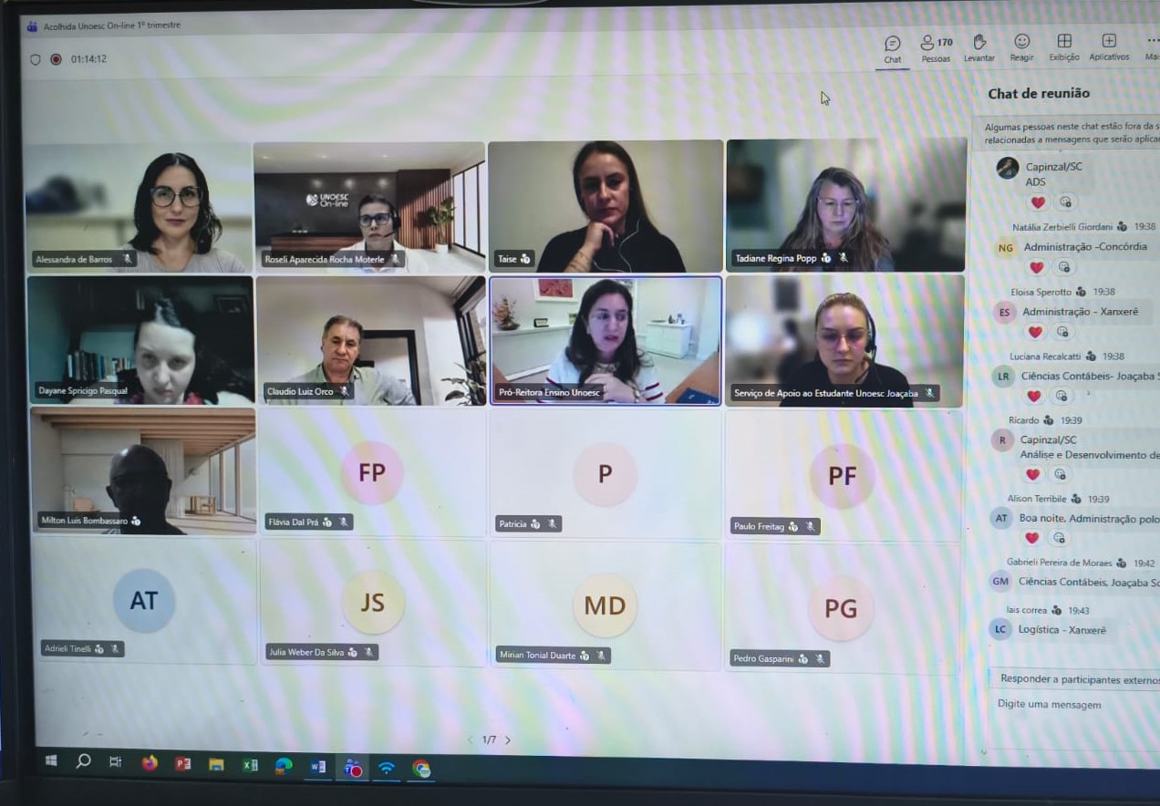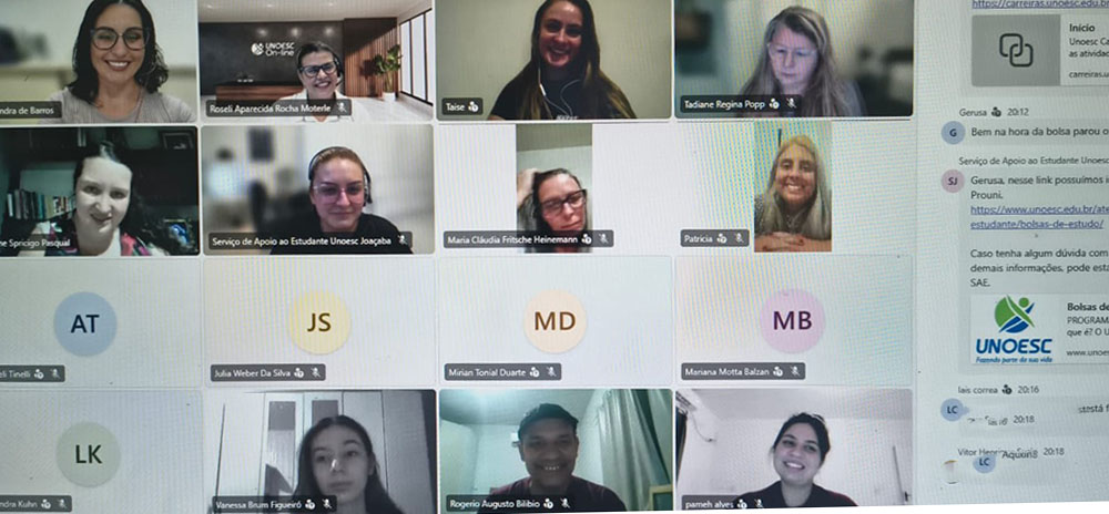 A Unoesc On-line realizou, na quinta-feira (19), um encontro virtual voltado ao acolhimento e à orientação dos estudantes ingressantes dos cursos de graduação a distância. A atividade teve como focos apresentar a metodologia de ensino on-line, esclarecer dúvidas e divulgar os serviços disponibilizados pela Instituição.
