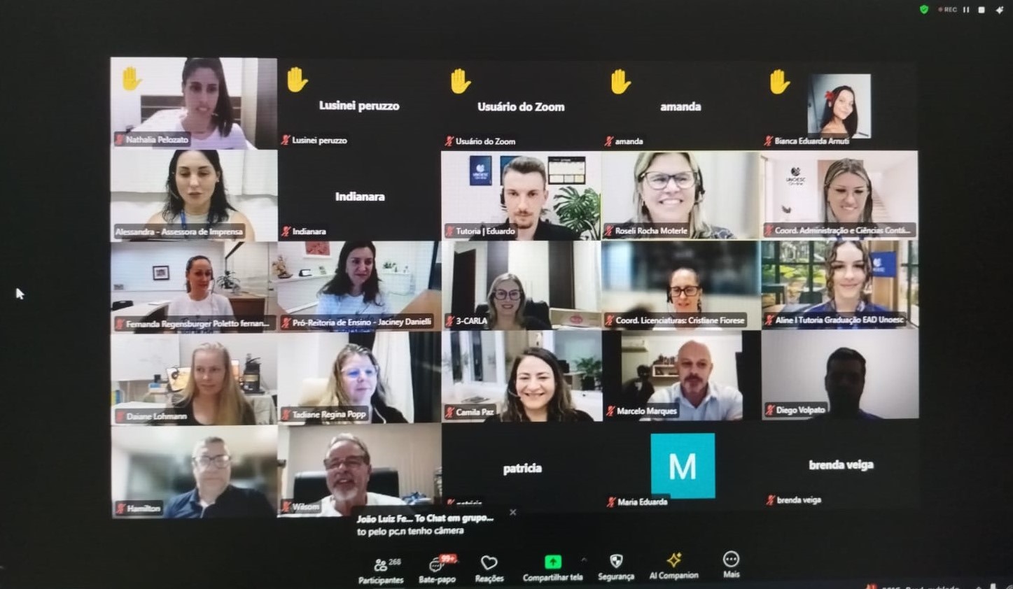 — Foi um momento muito alegre, tantas pessoas em tantas telas e lugares diferentes juntos, em um mesmo momento, para um propósito que é a formação das pessoas. Após o acolhimento, recebemos muitos feedbacks de estudantes animados e gratos por fazerem parte da Unoesc — destacou a coordenadora da Unoesc On-line, professora Roseli Aparecida Rocha Moterle.