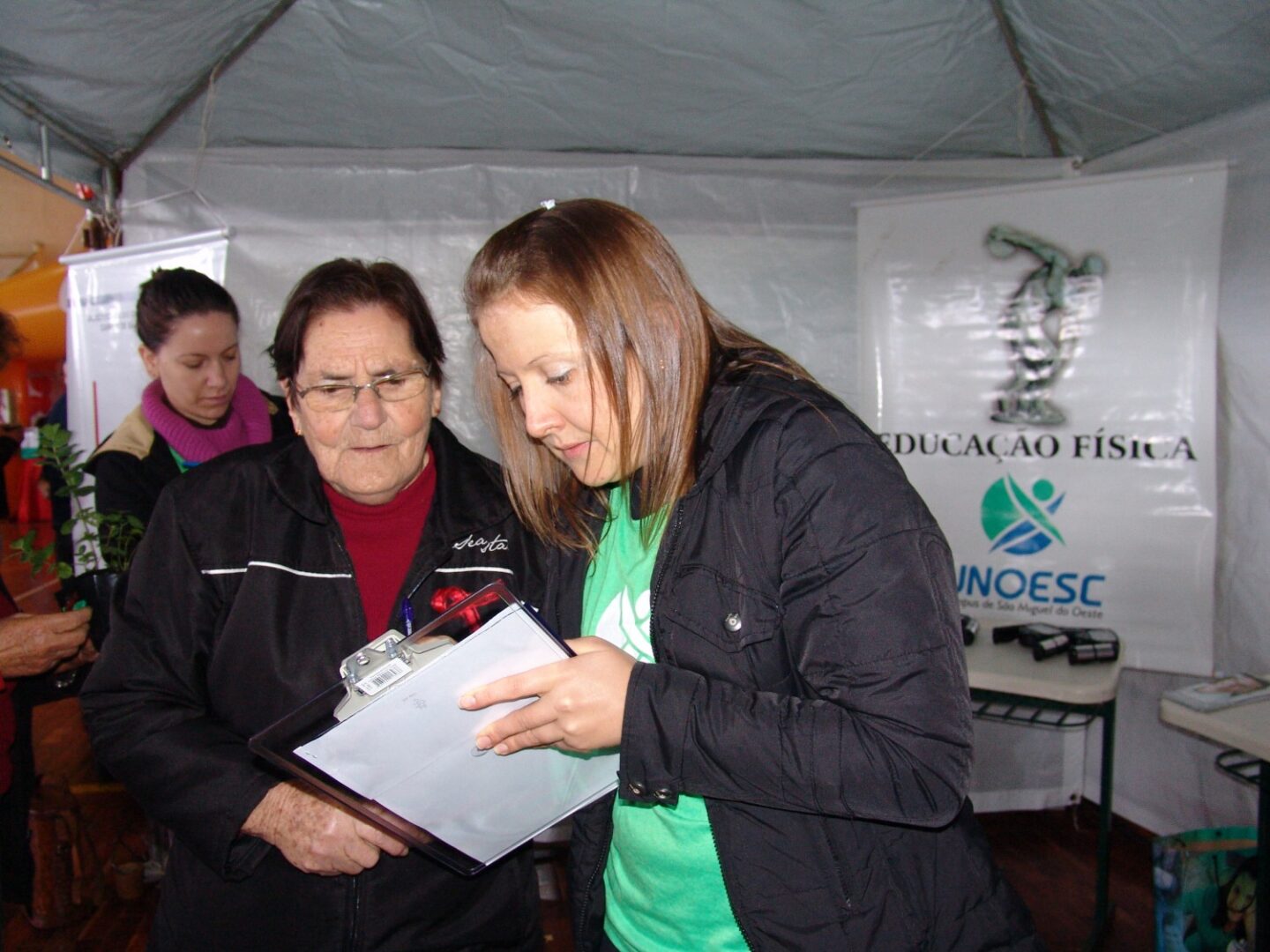 A Unoesc participou no sábado, dia 24, da “Ação Cooperada”, no ginásio da Escola Teonísio Wagner, no bairro Jardim Peperi. O Curso de Educação Física, por meio do Laboratório de Fisiologia do Exercício (Lafe), disponibilizou à população avaliações de peso, estatura, cálculo do Índice de Massa Corporal (IMC) e de Bioimpedância. No total, cerca de 60 pessoas participaram das avaliações e receberam orientações sobre os benefícios da atividade física.